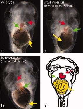 Cilia-driven leftward flow determines laterality in Xenopus.