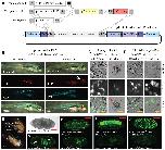 Fig. S3. Establishment of X. laevis transgenic lines amenable to Gal4-UAS binary transgene expression. (A,B) Schematics showing the construction of Gal4 and UAS constructs using pTransgenesis plasmids. (C-E) Merged brightfield and fluorescent exposures of single transgenic embryos containing the indicated Gal4 or UAS drivers. (F-H) Merged brightfield and fluorescent exposures of double transgenics. The arrowheads in G and H show a morphological defect in the tail in severe and less severe phenotypes. (I) Schematic of F0 founder crossings. (J) Brightfield images showing resulting F1 transgenic tadpoles, with double transgenics showing germline transmission of tail and body length defect. (K) Merged fluorescence of GFP and RFP channels for the tadpoles shown in I.