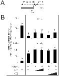 Figure 4. ING proteins enhance the ability of TRâ to activate transcription in the presence of T3 in a Xenopus oocyte transcription system.Microinjection experiments were performed using stage VI Xenopus oocytes. The oocyte cytoplasm was injected with the indicated mRNAs (1.15 ng/oocyte for TR and RXR, 1.15 or 2.3 ng/oocyte for ING1 and ING2). Following mRNA injection, all oocytes were injected in the germinal vesicle with the luciferase reporter plasmid TRE-Luc (0.33 ng/oocyte) which has the T3-dependent TRâpromoter containing a TRE driving the expression of firefly luciferase (“pGL2” shown in “A”), and the control vector phRG-TK driving the control Renilla luciferase (0.03 ng/oocyte: Promega). B) The injected oocytes were incubated at 18°C overnight in the presence or absence of 50 nM T3. The oocytes were assayed with a Dual-Luciferase® Reporter Assay System (Promega). Plotted are the averages and the standard errors of the mean firefly luciferase activity relative to the Renilla luciferase activity. These results are from two experiments each done in triplicate. The error bars represent the standard error of the mean, and statistical significance of data relative to each other (p<0.05, Mann Whitney U) is indicated by different letters. Bars with the same letters are not statistically different from each other. Note that the scales of the two graphs are different.