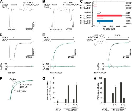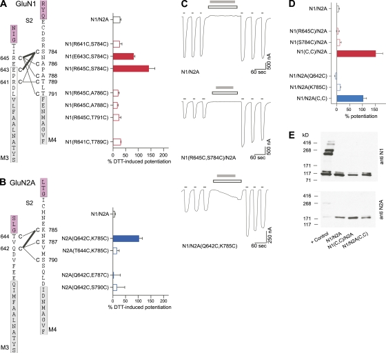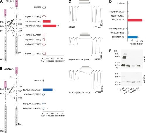 Local constraints in either the GluN1 or GluN2 subunit equally impair NMDA receptor pore opening.