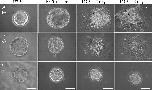 FIG. 4. Cultures of embryos derived from mNle+/− intercrosses. E3.5 blastocysts were harvested and cultured for 3 days. mNle+/+ and mNle+/− blastocysts (A) hatched from the zona pellucida after 1 day and attached to the culture dish. During the following days, the ICM proliferated (arrows) and the trophectoderm differentiated (arrowheads). mNle−/− blastocysts were indistinguishable from controls at E3.5 (B and C). After 24 h in vitro, most of them were unable to hatch from the zona (C) and degenerated rapidly. The remaining mNle−/− embryos hatched (B) and attached to the dish, and the trophectoderm expanded and differentiated (arrowhead). However, after 2 days in culture, the ICM degenerated and was no longer discernible. Bars, 50 μm. |