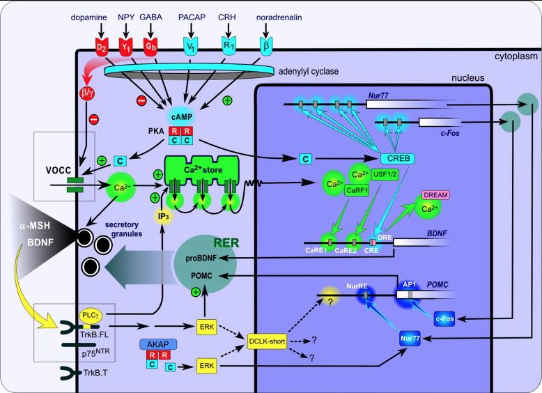 Genes referenced: adcyap1 bdnf creb1 crh fos kcnip3 mapk1 npy nr4a1 ntrk2 pomc vipr1