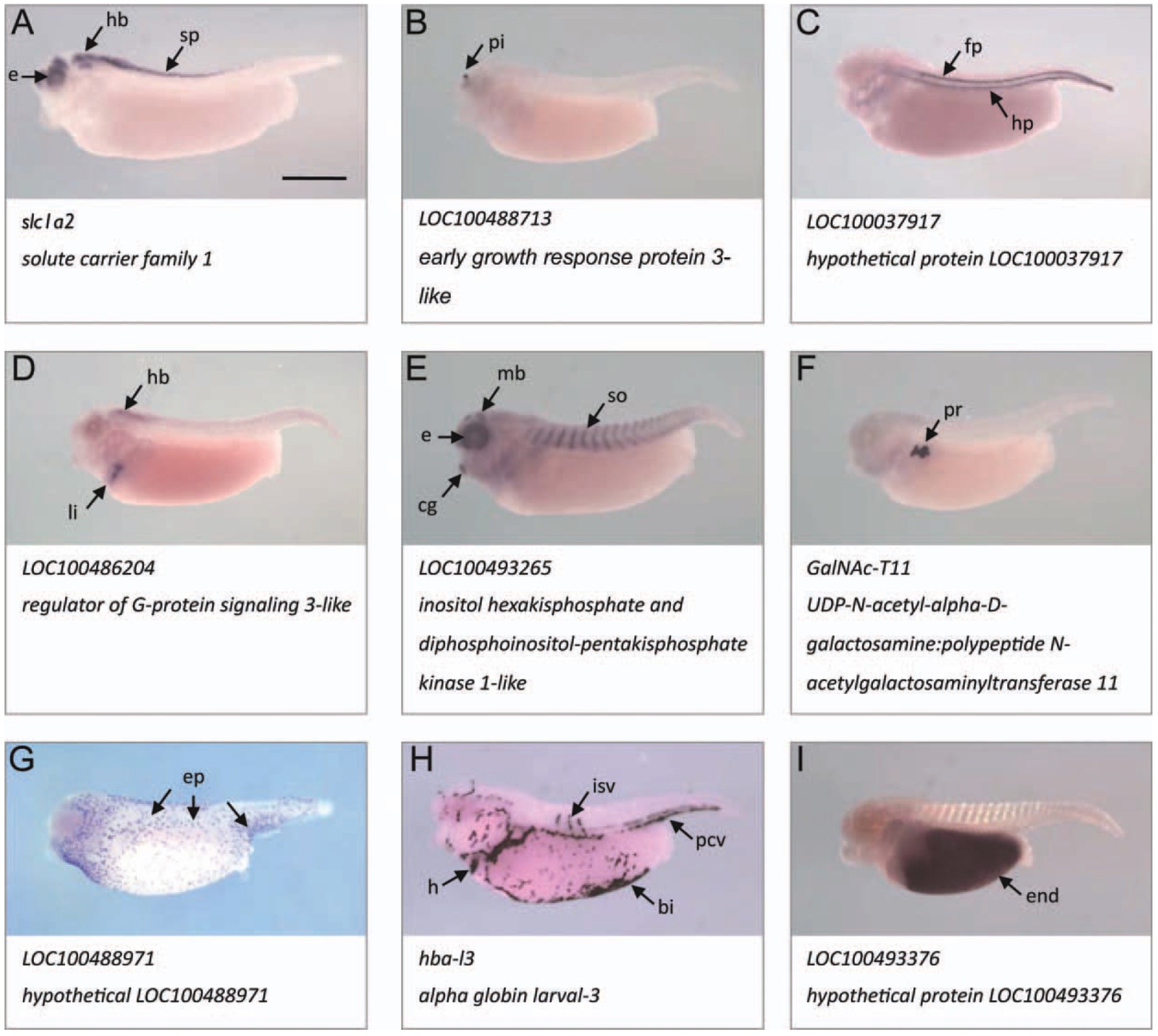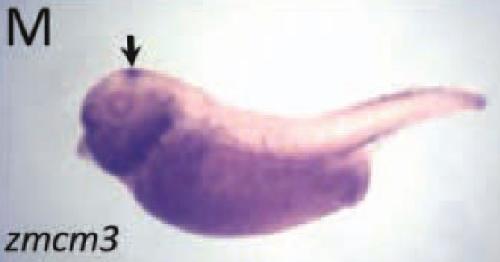 Genes referenced: adam23 alpl aurka col8a1 ddx39a dnajc27 egr3 fndc3b fuz galnt11 gpx3 gxylt1 hba-l5 hbz hes4 kpnb1 lurap1 mcm3 mcm3l mcmbp mgrn1 mhc1-uda mt-tr ncapg nop58 npm1 ppip5k1 prdx2 ptmap12 ranbp1 rgs3 slc1a2 spry4 ssbp1 sulf2 tbx2 tk1 tmem114 trmt2a trna tub usp21