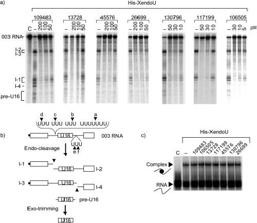 Functional characterization of XendoU, the endoribonuclease involved in small nucleolar RNA biosynthesis.