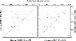 Dot-plot of toad-A amino acid sequence (ordinate), as compared to human and caiman AMBN sequences (abscissa). A single dot indicates four matching residues in a window of size 7.