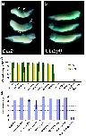 Fig. 4. Osteogenic lineage induction by GLI2 alleles in C3H10T1/2 cells. (a) WT and mutant alleles were transfected into cells, and the encoded proteins were detected by using an antibody against the N-terminal myc tag. (b) AP activity is detected when C3H10T1/2 differentiates into an osteogenic lineage. (c) Plot of the mean ± SEM of ratios of AP-positive cells per total transfected cells in 10 independent fields of cells, with one representative experiment shown. The apparent polymorphisms behave similarly to the normal control. The mutant alleles (nos. 2, 5, 8, 4, 15 and 16) lose the ability to induce AP activity.