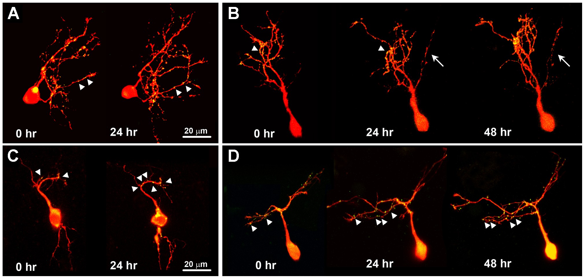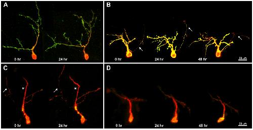 neurons, while control neurons increase their total dendritic arbor length in every 24 hr observation interval. (C) A relative measure of dendritic