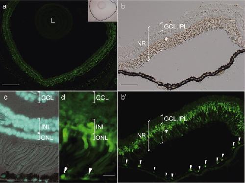 Transgenic Xenopus laevis with the ef1-α promoter as an experimental tool for amphibian retinal regeneration study.
