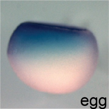 ndp (Norrie disease (pseudoglioma)) gene expression in Xenopus laevis embryos, egg stage, as assayed by in situ hybridization, side view, animal up . |