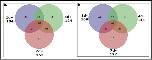 Figure 1. Venn diagram for a) upregulated and b) downregulated groups. The diagram shows the number of up and down regulated proteins in the axolotl proteomics data at 1, 4 and 7 day post amputation. 1d+ refers to the upregulated proteins and 1d- refers to the downregulated proteins at day 1. Other time points can be similarly interpreted. The value under each time point shows the total number of proteins up/down regulated at that time point.