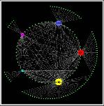 Figure 4. SP1 Network. The network shows SP1 (enclosed by a black circle) with its 56 targets from the bait list.