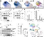 Figure 3: Irx5 orchestrates migration of cranial NCCs and primordial germ cells by repressing Sdf1 expression. (aâe) Cranial NCC migration patterns visualized by Twist1 expression in X. laevis embryos. Lateral view of head region of stage 26 embryos, anterior to the left. (a) Expression of Twist1 demarcated NCCs in four branchial arches (1â4; n = 36/36). Dashed red line outlines eye vesicle and dashed white line outlines first branchial arch. Scale bar, 0.25 mm. (b) Irx5 morpholino (MO)-injected embryos specifically lacked NCCs in first branchial arch (n = 23/38). Red arrowhead, ectopic NCC migration over eye vesicles. (c) Injection of wild-type mouse Irx5 DNA in Irx5 morphant embryos rescued NCC migration to first branchial arch (n = 30/40). (d) Injection of DNA encoding mouse Irx5 A150P in Irx5 morphant embryos did not rescue NCC migration to first branchial arch (n = 27/48). (e) Injection of DNA encoding mouse Irx5 N166K partially rescued NCC migration in Irx5 morphant embryos (n = 23/48). (f) Irx5 A150P protein was not detected in embryos injected with DNA encoding mouse Irx5 A150P compared to embryos injected with DNA encoding wild-type mouse Irx5. α-actin, loading control. Quantitative RT-PCR results show comparable transcription for each Irx5 DNA construct injected. Actb, positive control. (g,h) At stage 25, Sdf1 was markedly overexpressed in head region of Irx5 morphants relative to control embryos (n = 18/18). Scale bar, 0.25 mm. (i) Injection of a human SDF1 promoter reporter showed greater basal luciferase activity in Irx5-depleted embryos. Overexpression of mouse Irx5 in MS5 cells repressed transactivation of SDF1 reporter. Data are mean ± s.d. *P < 0.05 (one-tailed Student's t test). (j) Twist1 expression demarcated NCCs in four branchial arches (1â4; n = 70/70). Dashed red line, eye vesicle. Scale bar, 0.25 mm. (k) Sdf1 morpholinoâinjected embryos did not show overt NCC migration defects (n = 46/46). (l) Irx5 morpholinoâinjected embryos lacked NCCs in first branchial arch (n = 37/58). Dashed black line, absence of first branchial arch. (m) Reduction of Sdf1 by injection of Sdf1 morpholino rescued NCC migration to first branchial arch of Irx5 morphants (n = 42/58). (n) Defective migration of primordial germ cells marked by Xpat was seen in Irx5 morphant embryos (n = 33/40). Scale bar, 0.5 mm.