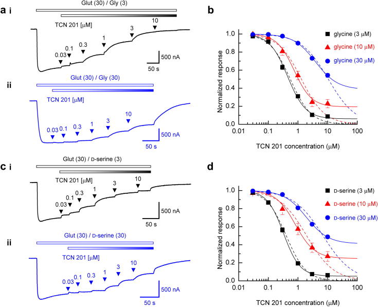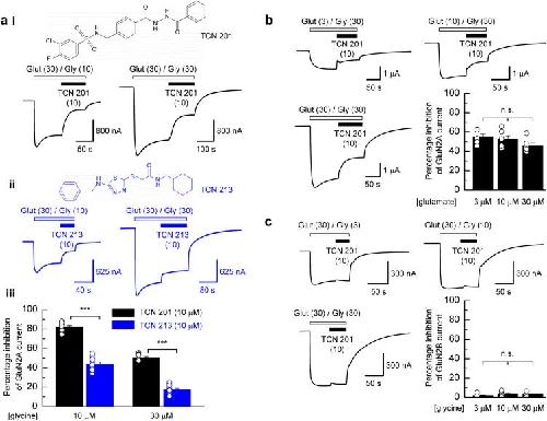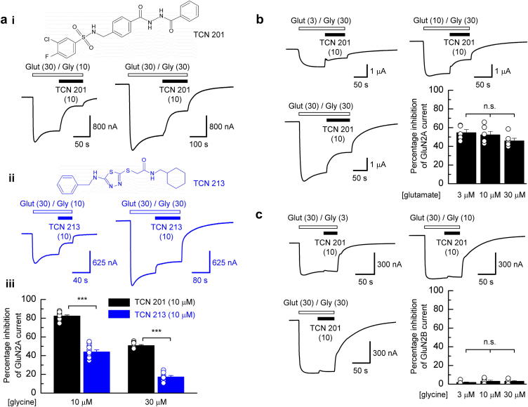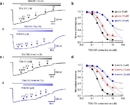 TCN 201 selectively blocks GluN2A-containing NMDARs in a GluN1 co-agonist dependent but non-competitive manner.