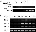 Figure 3. TIMP2 expression during X. laevis development.Total RNA was isolated from whole animals during X. laevis development and subjected to One-Step RT-PCR analysis with a pair of primers amplifying both TIMP2A and TIMP2B (TIMP2) or stromelysin-3 (ST3). The expression of the house-keeping gene histone H4 was similarly determined as a control.