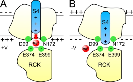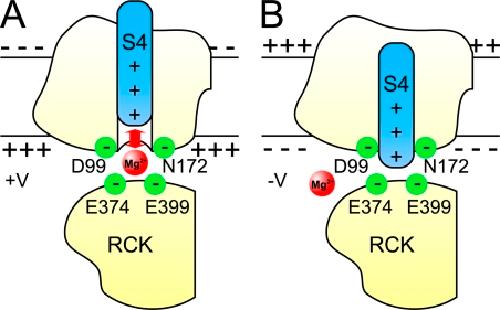 Yang, Mg2+ mediates interaction between the voltage sensor and cytosolic domain to activate BK channels. 2007, Pubmed
