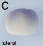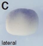 kctd15 (potassium channel tetramerization domain containing 15) gene expression in Xenopus laevis embryo, assayed via in situ hybridization, NF stage 10.5, horizontal view, animal up. |