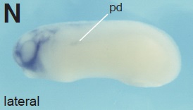 kctd15 (potassium channel tetramerization domain containing 15) gene expression in Xenopus laevis embryo, assayed via in situ hybridization, NF stage 16, lateral view, anterior left, dorsal up. |