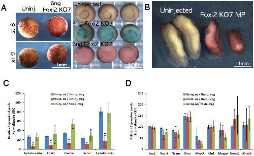 Figure 3. The phenotype of Foxi2-depleted (Foxi2 KO7) embryos.
