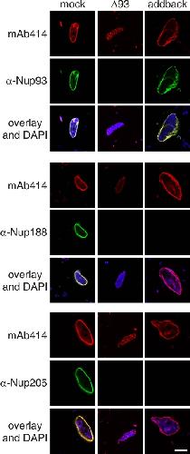 Grandi, Nup93, a vertebrate homologue of yeast Nic96p, forms a complex with a novel 205-kDa protein and is required for correct nuclear pore assembly. 1997, Pubmed , Xenbase
