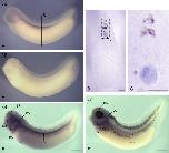 Fig. 10. Expression of Tspan5 during Xenopus development. (A) Whole-mount in situ hybridization for Tspan5 encoding gene Tm4sf9 on Xenopus embryos at stage 32, 34 and 37, lateral view, anterior to left. (B) Transverse vibratome section corresponding to the line indicated in panel B. NT, neural tube; NC, notochord. (C) Crop area corresponding to the dashed square indicated in panel C. (D) Whole-mount in situ hybridization for sense Tm4sf9 at stage 32 as negative control, lateral view, anterior to left. NT = neural tube, N0 = notochord, BR = brain, OV = otic vesicle, BA = branchial arches. Scale bar 450 μm (A, D, E and F) and 100 μm (B and C).