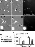FIGURE 4:. Increase in axonal growth speed following the reduction of PTEN expression in neurons. Spinal neurons were isolated from embryos injected with control MO (Ctl-MO; A–C) or PTEN-specific MO(PTEN-MO; D–F) and cocultured with muscle cells obtained from uninjected embryos. Axons with Ctl-MO and PTEN-MO both slowed after contact with muscle, but after touching muscle, PTEN-MO-axons grew nearly as fast as control axons did before muscle contact. Arrowheads indicate initial and final positions of the terminal ends of axons (A, B, D, and E), and the presence of MOs tagged with fluorescein is shown by the fluorescence of the axons (C and F). (G) Immunoblots showing that PTEN expression was knocked down in Xenopus embryos injected with PTEN-MO but not Ctl-MO (top blot); anti-tubulin staining shows protein loading (bottom blot). (H) Quantification of growth speeds of axons with Ctl-MO and PTEN-MO. Mean ± SEM; t test: *, p = 0.02 compared with Ctl-MO-axons before contact with muscle; ^^, p < 0.005 relative to growth speed of Ctl-MO-axons after muscle contact; number of axons examined by time-lapse recording: 8 (Ctl-MO before contact), 30 (Ctl-MO after contact), 15 (PTEN-MO before contact), 33 (PTEN-MO after contact).