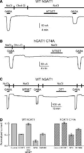 Zomot, The interaction of the gamma-aminobutyric acid transporter GAT-1 with the neurotransmitter is selectively impaired by sulfhydryl modification of a conformationally sensitive cysteine residue engineered into extracellular loop IV. 2003, Pubmed , Xenbase