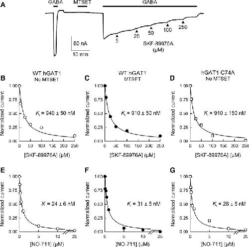 Zhou, The aqueous accessibility in the external half of transmembrane domain I of the GABA transporter GAT-1 Is modulated by its ligands. 2004, Pubmed
