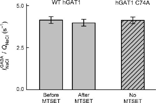 Yu, Topological localization of cysteine 74 in the GABA transporter, GAT1, and its importance in ion binding and permeation. 1998, Pubmed , Xenbase