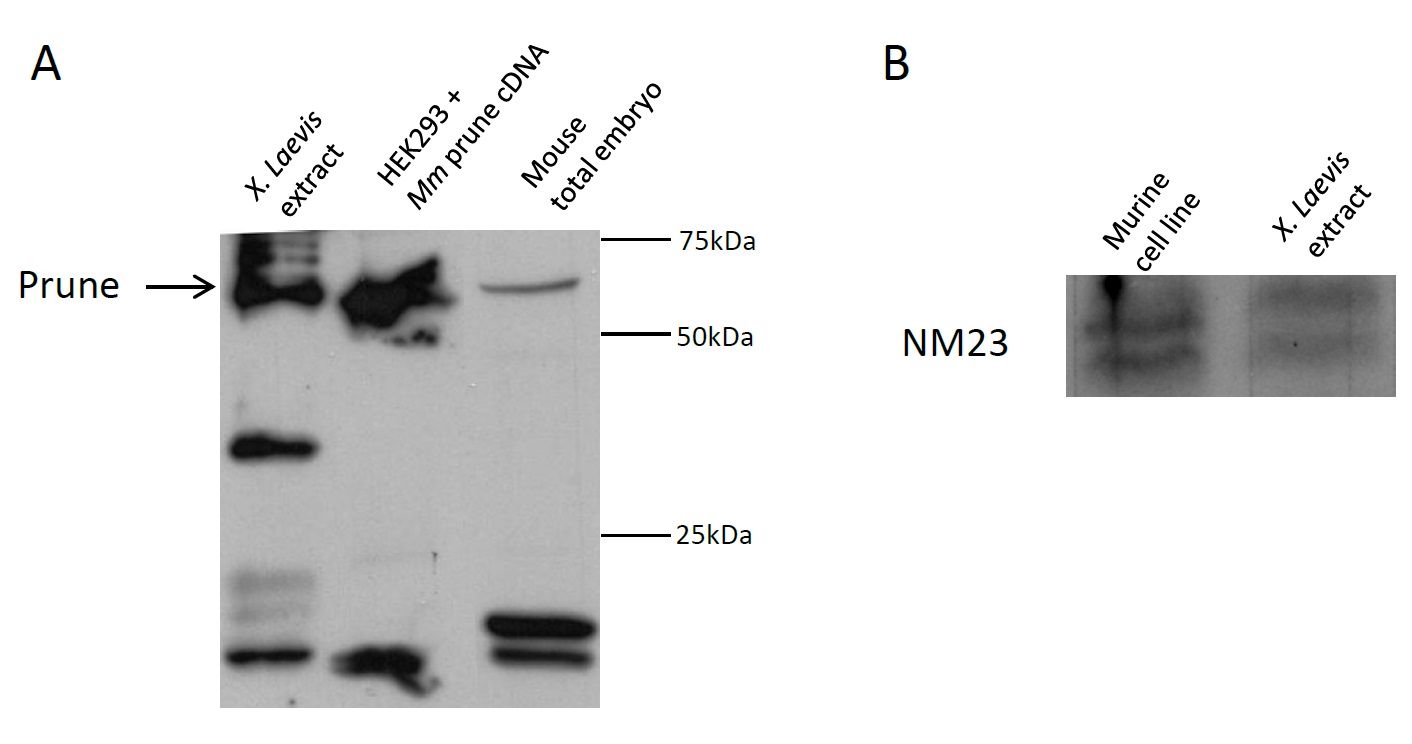 Protein detection of prune and NM23 in Xenopus retina.