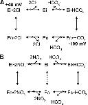Figure 9. Models of coupled and uncoupled anion transport by slc26a3. (A) A model of the turnover cycle of coupled 2Cl−/1HCO3− exchange by slc26a3. (B) A model for the turnover cycles of uncoupled NO3− and SCN− transport by slc26a3.