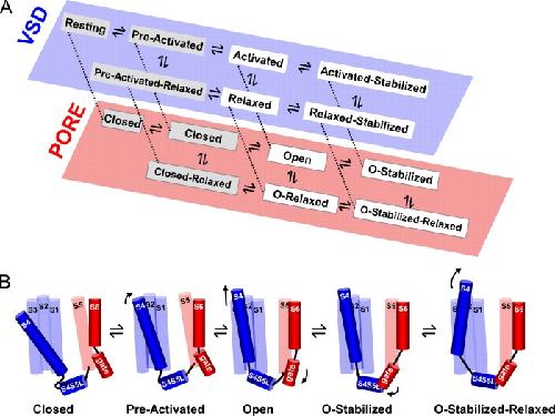 Villalba-Galea, S4-based voltage sensors have three major conformations. 2008, Pubmed