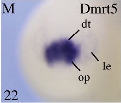 Key: dt = dorsal telencephalon; op = olfactory placode, le = lens placode. |