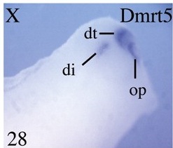 Key: dt= dorsal telencephalon; di = diencephalon; op= olfactory placode. |