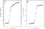 Fig. 3. ITC data for the titration of CaM by V5p1s (a) and V6p1 (b). Integrated heat pulses and curves (red) fitted using “sequential binding sites model” are shown for each peptide. The resulting thermodynamic parameters are listed in Table 2