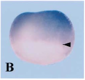 are localized in the animal region of egg. (B) The dorsolateral view of an early gastrulaembryo (stage 10). Xamp mRNA is restricted to the dorsal ectoderm.