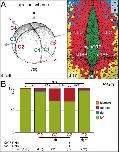 Fig 5. Cx26 but not Cx32 is required for LR development. Lineage and side-specific knockdown of Cx26 and Cx32 alone or in combination as specified, followed by Pitx2c expression analysis in morphant tadpoles. Injections were targeted to the C2 lineage, i.e. the somitic GRP cells and the adjacent endodermal cells, or to the C3 lineage, i.e. more lateral endodermal cells (Fig. 4A,A′). Note that Cx32 knockdown did not affect Pitx2c expression, and that Cx26 was only required on the left side. Note also two non-overlapping Cx26-MOs, which targeted the 5′-UTR and the start AUG, respectively, gave qualitatively identical results, confirming the specificity of the knockdown. Note further that targeting to the endodermal cells adjacent to the GRP (C2 lineage) resulted in highly significant disruption of Pitx2c expression, while effects were not significant in lateral endodermal cells (C3 lineage). Numbers represent number of embryos analyzed. Statistical significances were calculated using Pearson's chi square test. |