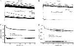 Figure 3. Use-dependent block of the fKv1.4ΔN currents by flecainide and verapamil. (A and B) Sixty repetitive depolarizing steps from −90 to +50 mV for 500 ms each were applied in the absence and presence of flecainide (A) or verapamil (B). (C and D) Each peak current was normalized to the peak current at the first step under control conditions and then plotted against the number of steps. Data are shown as mean±SEM (n=5).