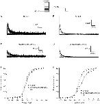Figure 6. Effects of flecainide and verapamil on the kinetics of the fKv1.4ΔN channel recovery from steady-state inactivation. The degree of recovery was measured by following a standard variable interval gapped step protocol. An initial 5 s step (P1) from −90 to +50 mV was followed by a second step (P2) to +50 mV after an interval of between 0.1 and 20 s. (A and B) Current traces were elicited in the absence of flecainide (A) or verapamil (B). (C and D) Current traces obtained in the presence of 500 μmol/L flecainide (C) or 250 μmol/L verapamil (D). (E and F) The ratio of the peak current elicited by the P1 and P2 steps (P2/P1) is plotted as a function of the various interstep intervals. The continuous line represents the fit of the data to the equation: f=1−A*exp(−τ/t). Data were normalized between 0 and 1 presented with intervals on a log scale. Data are shown as mean±SEM (n=5).