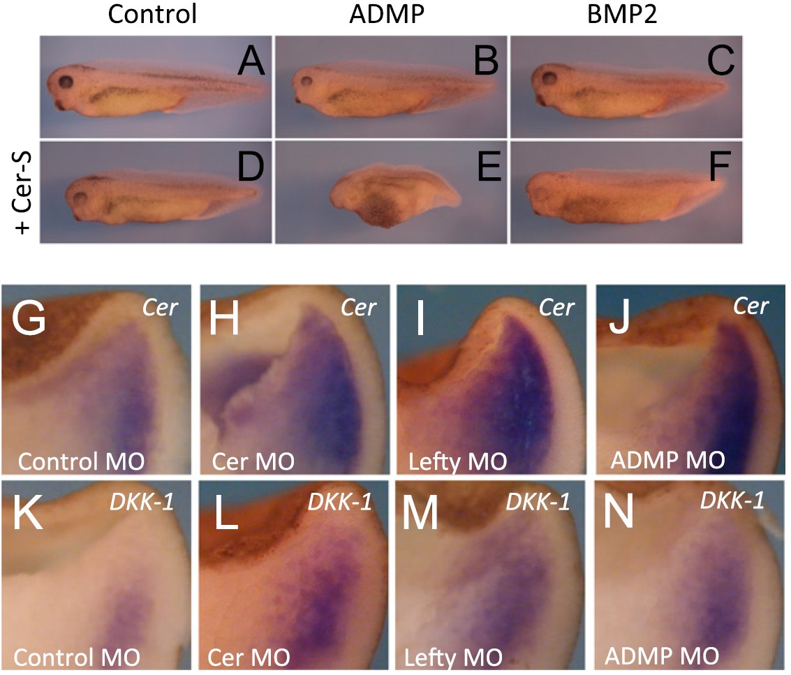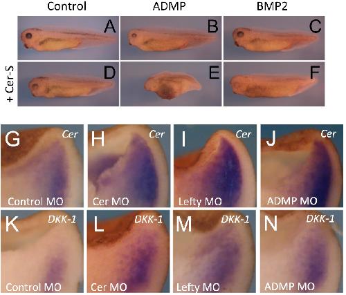 Cerberus does not affect ADMP activity, whereas it inhibits BMP responsiveness