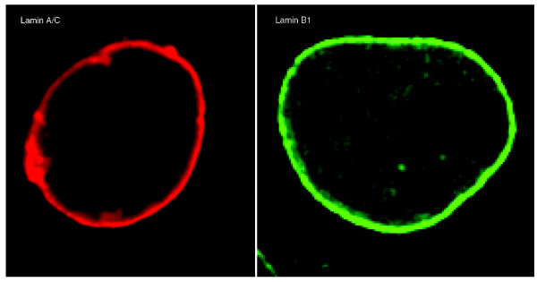 Moir, Nuclear lamins A and B1: different pathways of assembly during nuclear envelope formation in living cells. 2000, Pubmed