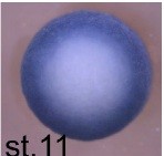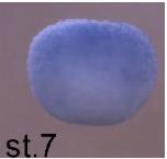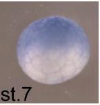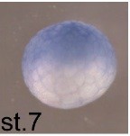 h3-3b (H3.3 histone B) gene expression in Xenopus laevis embryo, assayed via in situ hybridization, NF stage 2, animal view. |