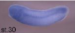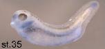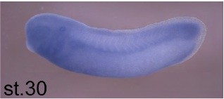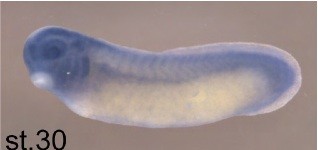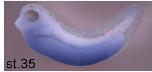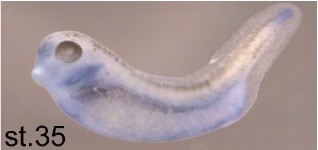 h3f3b (H3 histone, family 3B) gene expression in Xenopus laevis embryo, assayed via in situ hybridization, NF stage 35, lateral view, anterior left, dorsal up.