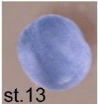 h3f3a (H3 histone, family 3A) gene expression in Xenopus laevis embryo, assayed via in situ hybridization, NF stage 13, dorsal up.