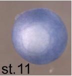 h3-3a (H3.3 histone A) gene expression in Xenopus laevis embryo, assayed via in situ hybridization, NF stage11, vegetal view.