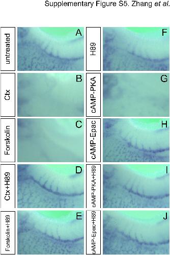 Supplementary Fig. S5. Expression of aplnr upon modulating cAMP Signaling. (A�J) Whole mount in situ hybridization for aplnr comparing untreated controls and embryos treated with several drugs modulating cAMP signaling.