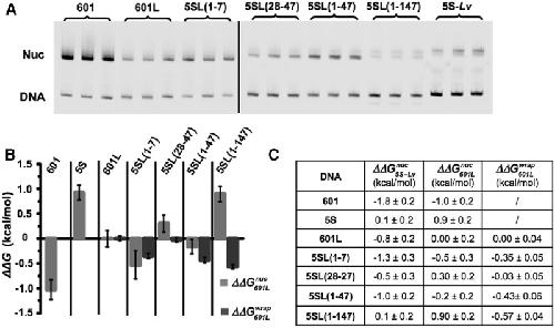 Thåström, Measurement of histone-DNA interaction free energy in nucleosomes. 2004, Pubmed