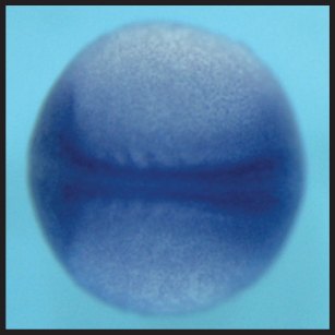 kmt5b (lysine (K)-specific methyltransferase 5B) gene expression in Xenopus laevis embryo, assayed via in situ hybridization, NF stage 3, animal view. |