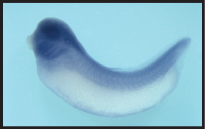 kmt5c (lysine (K)-specific methyltransferase 5C) gene expression in Xenopus laevis embryo, assayed via in situ hybridization, NF stage 24-25, lateral view, anterior left, dorsal up. |