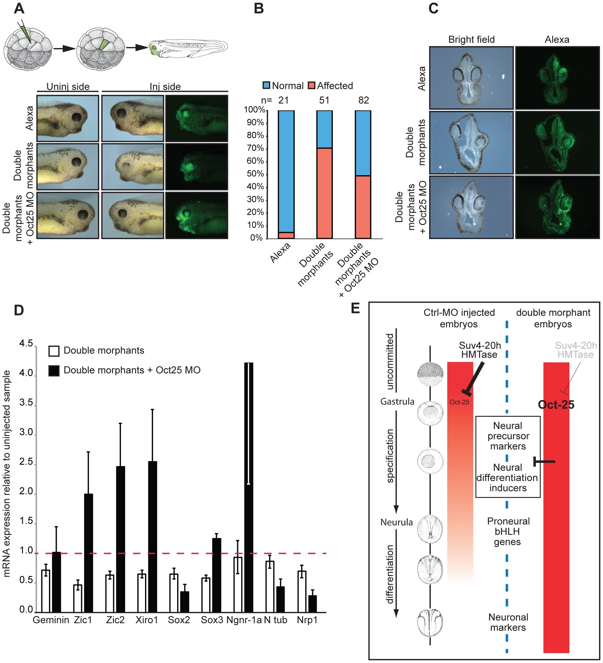 Figure 7. Oct-25 knockdown in double-morphant embryos rescues xSuv4-20h phenotypes.