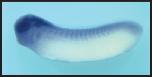 kmt5b (lysine (K)-specific methyltransferase 5B) gene expression in Xenopus laevis embryo, assayed via in situ hybridization, NF stage 33-34, lateral view, anterior left, dorsal up. |